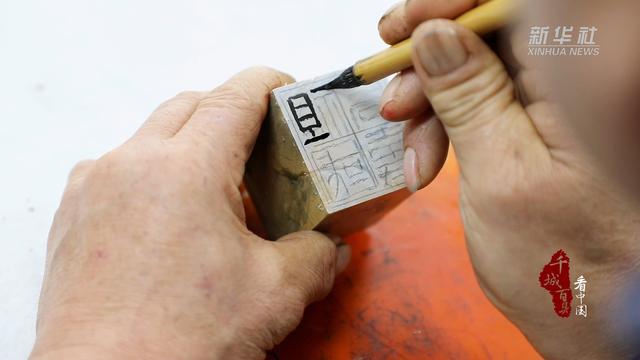 篆刻一枚印章需要设计印稿、执刀刻印、修整、钤印、篆刻边款等步骤,经过篆刻艺人的精心打磨,一枚印章就诞生了。
