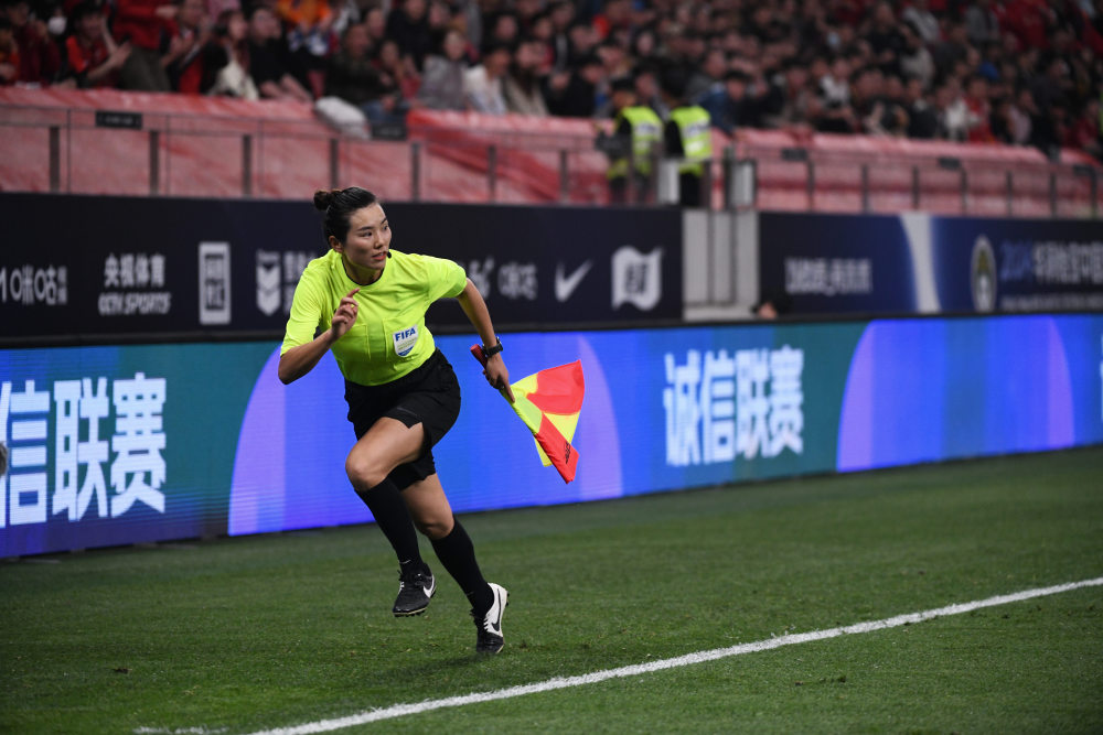 当日,在2024赛季中国足球协会超级联赛第六轮上海海港队主场对阵山东泰山队的比赛中,谢丽君担任第二助理裁判员,成为国内首位执裁男子足球顶级职业联赛的女子裁判员。