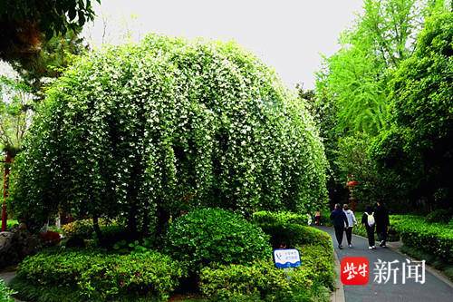扬子晚报网4月14日讯(通讯员 徐福庚 记者 董婉愉)这两天,南京郑和公园“木香花亭”里的木香花正在热烈绽放,迎来每年的最佳观赏期,花开时像巨伞,像瀑布,释放着花季的活力和魅力,阵阵香气扑鼻而来,很多来此赏花的市民游客在此沉醉。