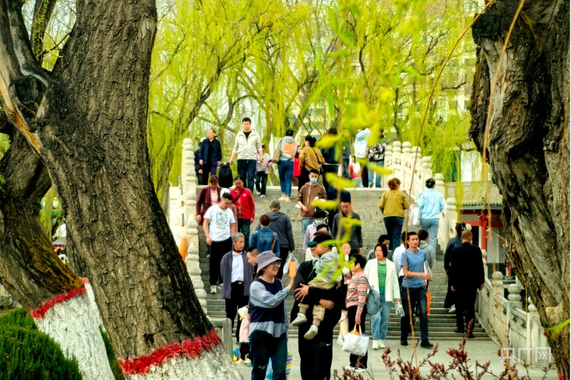央广网西宁4月15日消息(记者张海东)4月的高原古城西宁处处花红柳绿,一派生机勃勃的景象。许多游人和市民利用周末时光来到户外,走进公园内赏花踏青。公园、绿地、广场上的桃花、杏花、梨花、连翘相继开放,和煦的春光下人们举家出游,享受春日美好时光。随着春季赏花踏青时节的到来,青海省西宁市及周边景区也开启了新一年的旅游季。
