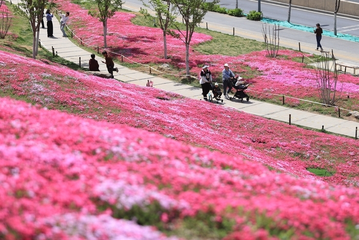 4月16日,在龙鼎大道南首路东侧山坡上,盛开的福禄考汇成一片五彩的“花海”,吸引众多市民和游客前来打卡拍照。这里原来是渣土堆积而成的荒坡,如今,每年4月初都是春花遍野,成为济南规模最大的福禄考花海。