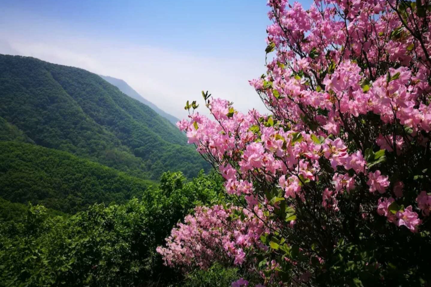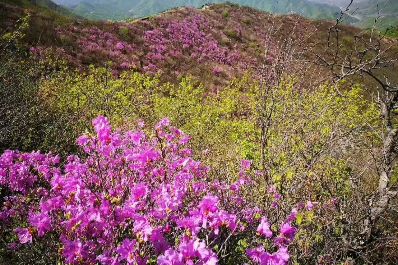 央广网大连4月18日消息(记者 于芳菲 王松)自4月10日起,大连瓦房店市万家岭镇老帽山上的映山红已进入最佳观赏期。每年四月中旬至“五一”期间,野生杜鹃竞相怒放,灿若粉霞,令人赏心悦目。