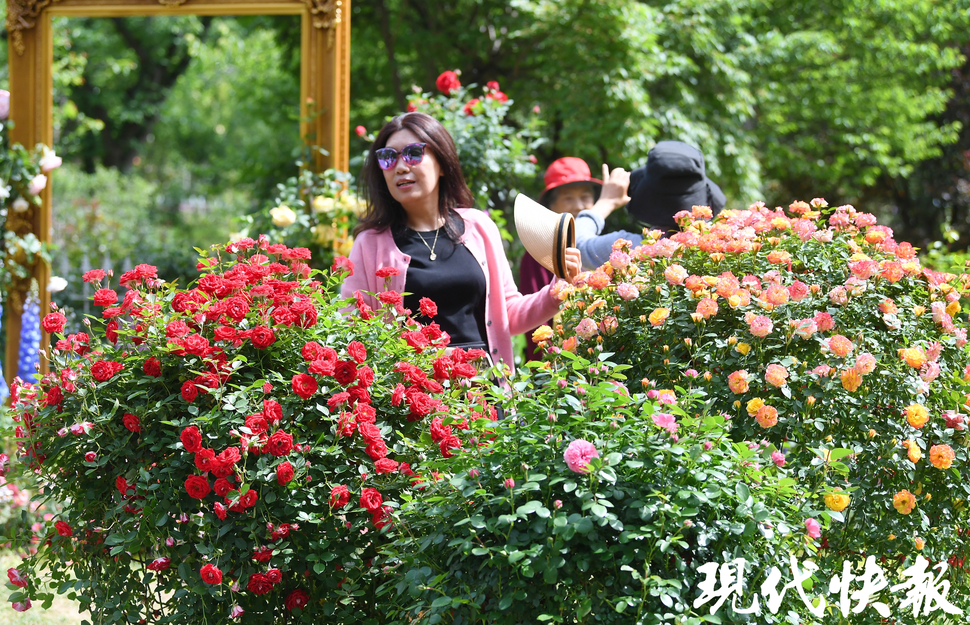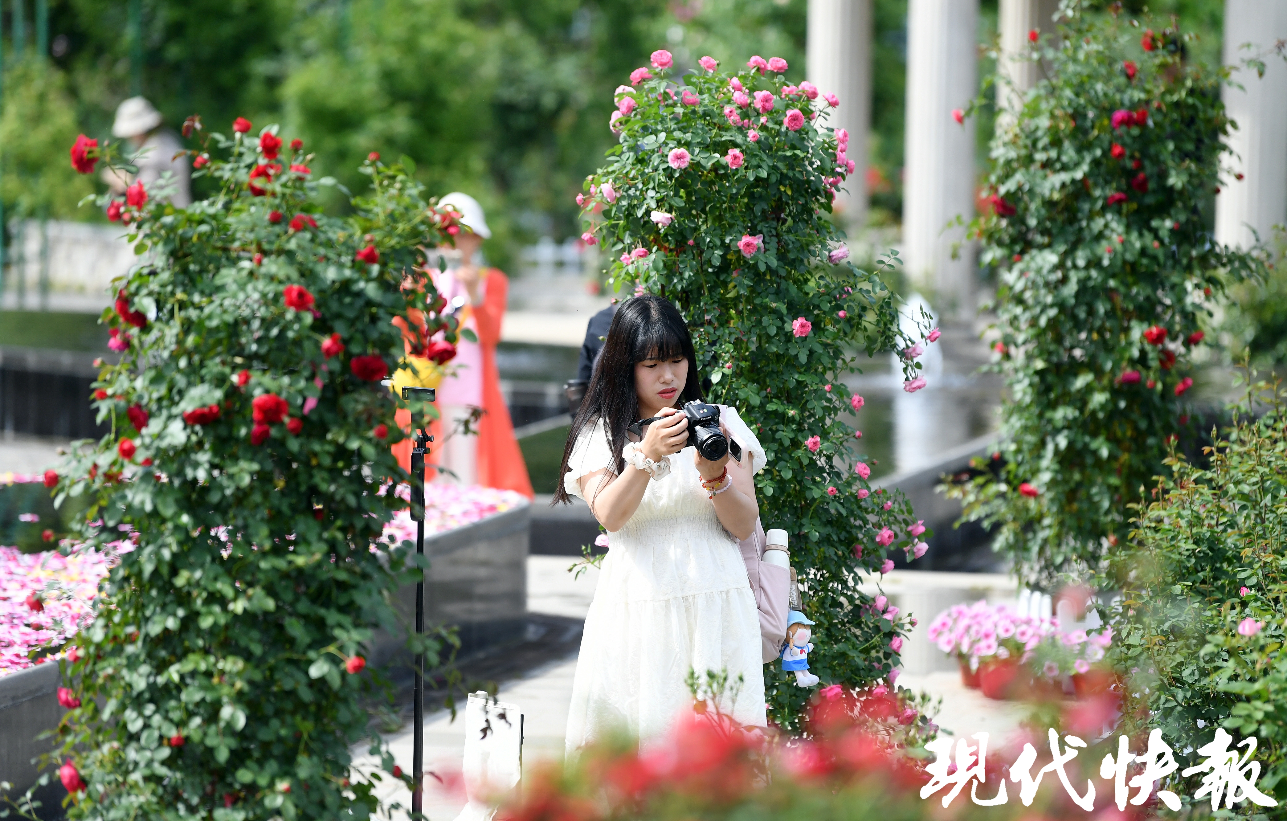 现代快报讯(记者 张然/文 施向辉/摄)你能分得清月季、玫瑰和蔷薇吗?这些春花让你一次看个够。近日,2024年南京月季展在中山植物园开展,结合欧式景亭、水池、廊架等景观,集中展示月季、玫瑰、蔷薇等300余种,今年展览新增多处拍照打卡点,有月季打造的“爱心长廊”和“心形拱门”,也有精心打造的“花镜画框”,吸引了大批游客争相拍照打卡。据了解,展览将持续至5月20日。