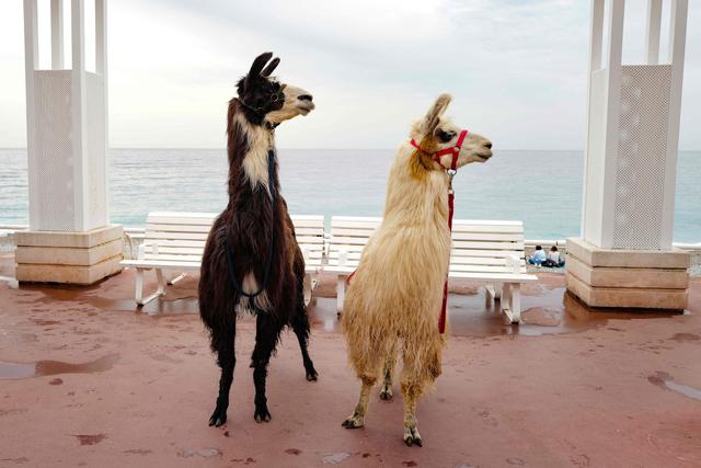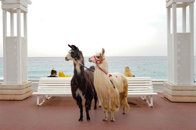 这是4月28日在法国尼斯海滨拍摄的羊驼。新华社/法新