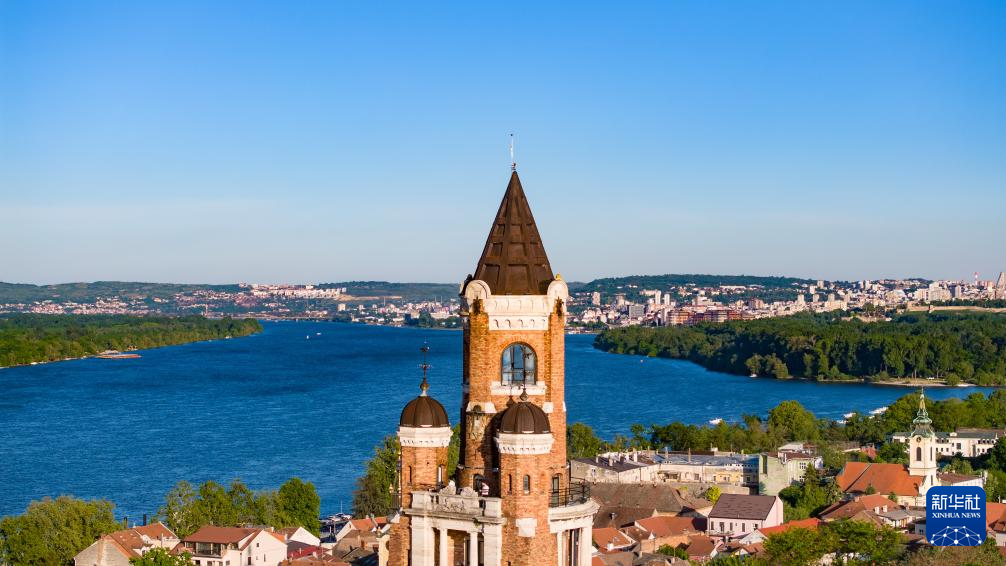 塞尔维亚贝尔格莱德泽蒙小镇景色(2024年4月29日摄,无人机照片)。