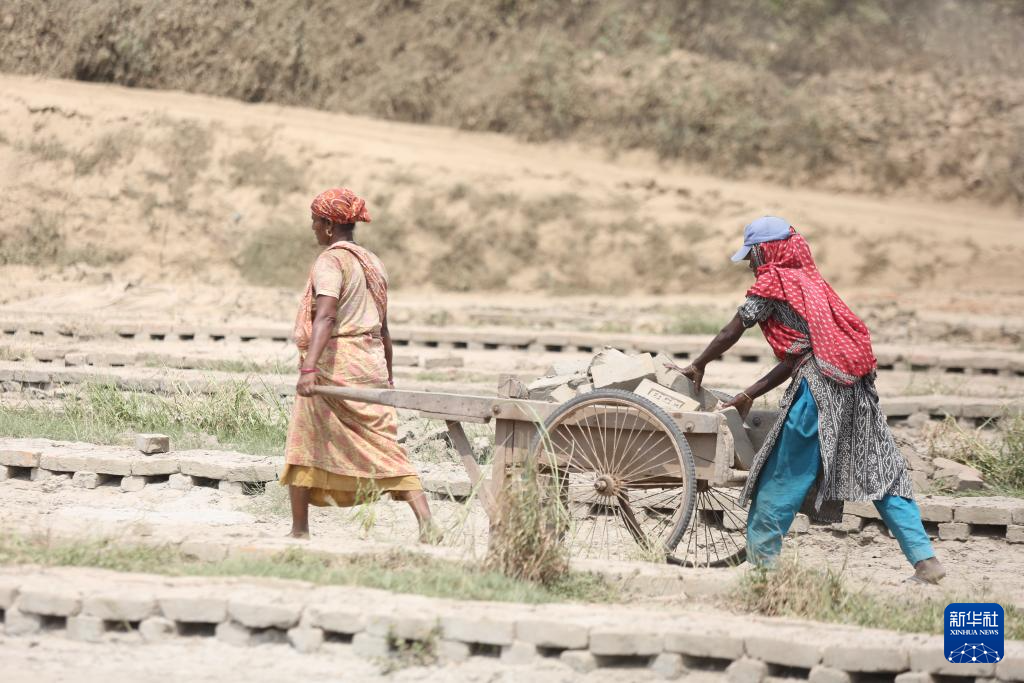 4月30日,在孟加拉国首都达卡,工人们在烈日下工作。