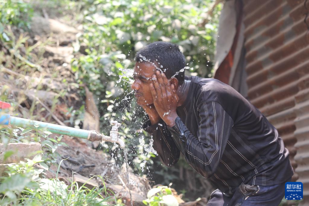 4月30日,在孟加拉国首都达卡,一名青少年喝水降温。