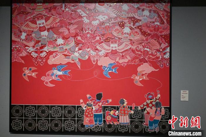美术展展出的陈雨仪年画作品《放飞我们的梦》。记者刘忠俊摄