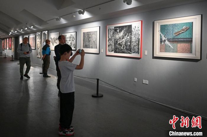 现场展出的作品吸引孩子用手机拍照。记者刘忠俊摄