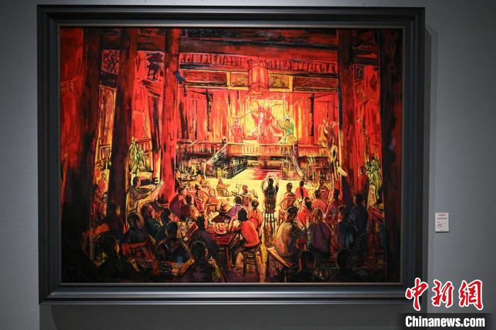 美术展上李林的油画作品《蜀韵璀璨》。记者刘忠俊摄