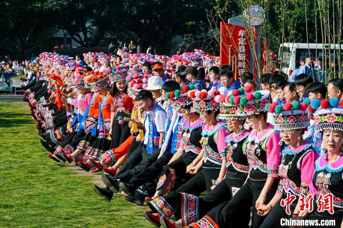 “千年跳一脚,百年赶一会。”云南省楚雄彝族自治州牟定县民族传统盛会——三月会,是一个具有1000多年历史的节日。5月5日,“有一种叫云南的生活——云南舞蹈大家跳”暨牟定“三月会”在牟定县启幕。现场,成千上万的各族同胞身穿绚丽的盛装,欢聚牟定,弹起龙头四弦琴,唱起彝家左脚调,跳起千年左脚舞,开启一场民族传统节日的狂欢。地处滇中的牟定县是彝族左脚舞的发源地,素有“中国彝族左脚舞之乡”“中国民间文化艺术之乡”的美誉。