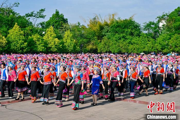 图为牟定“三月会”现场,万人同跳左脚舞。中共牟定县委宣传部供图