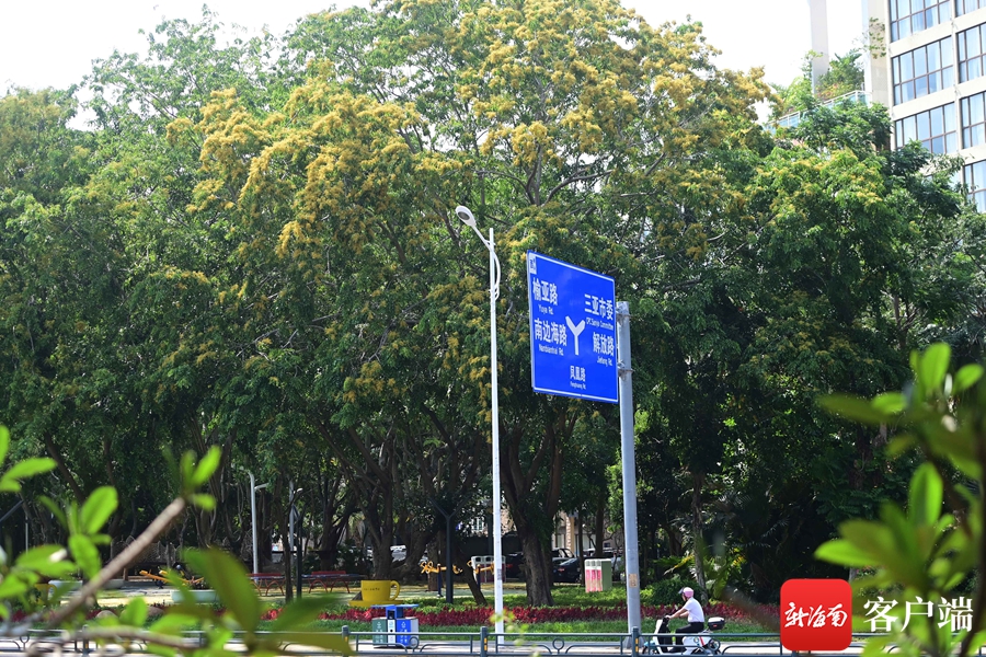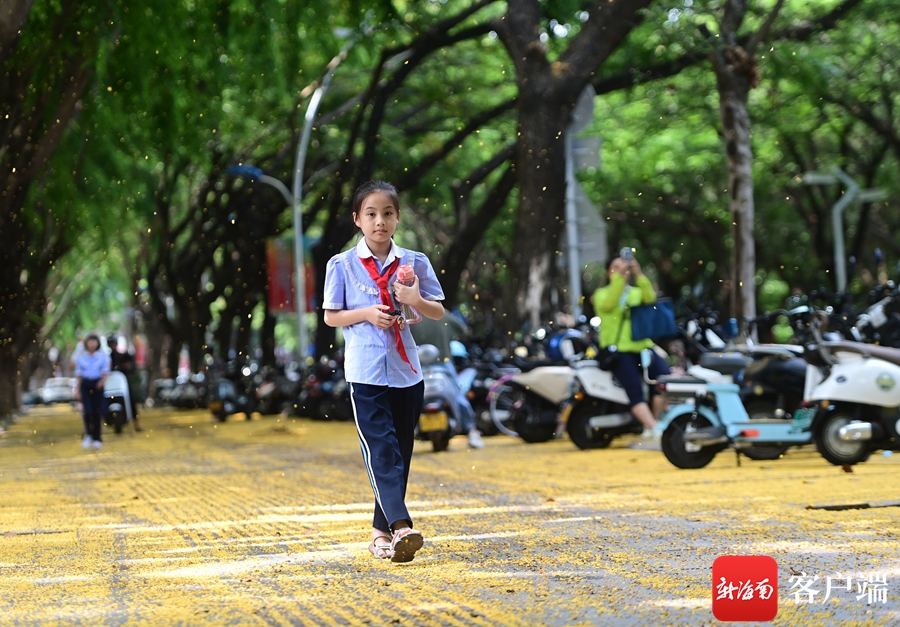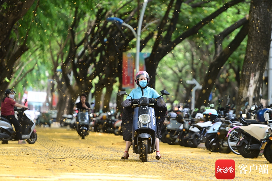 新海南客户端、南海网5月6日消息(记者沙晓峰)5月6日,三亚,人们从紫檀树下走过,金黄色的花儿落满地。
