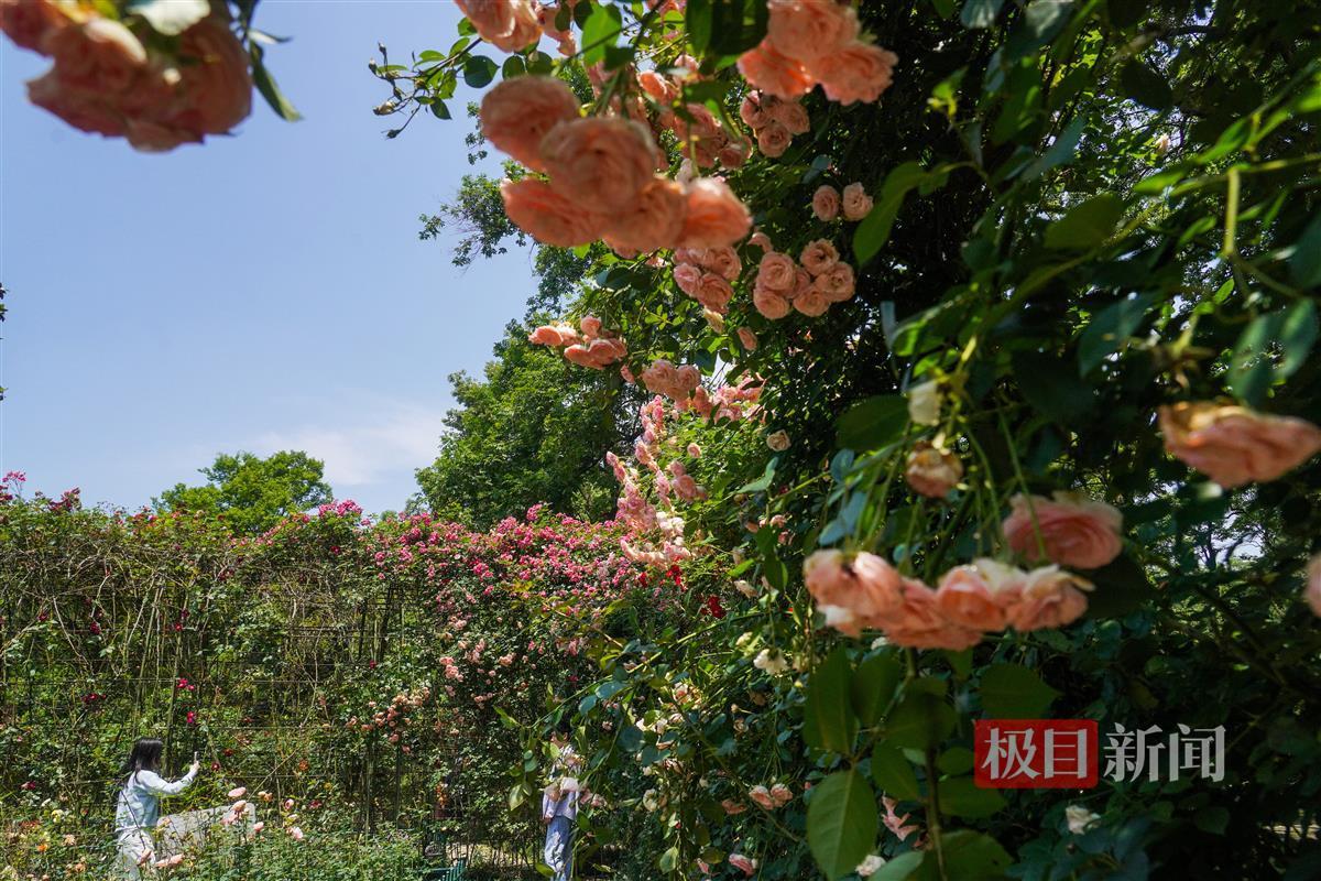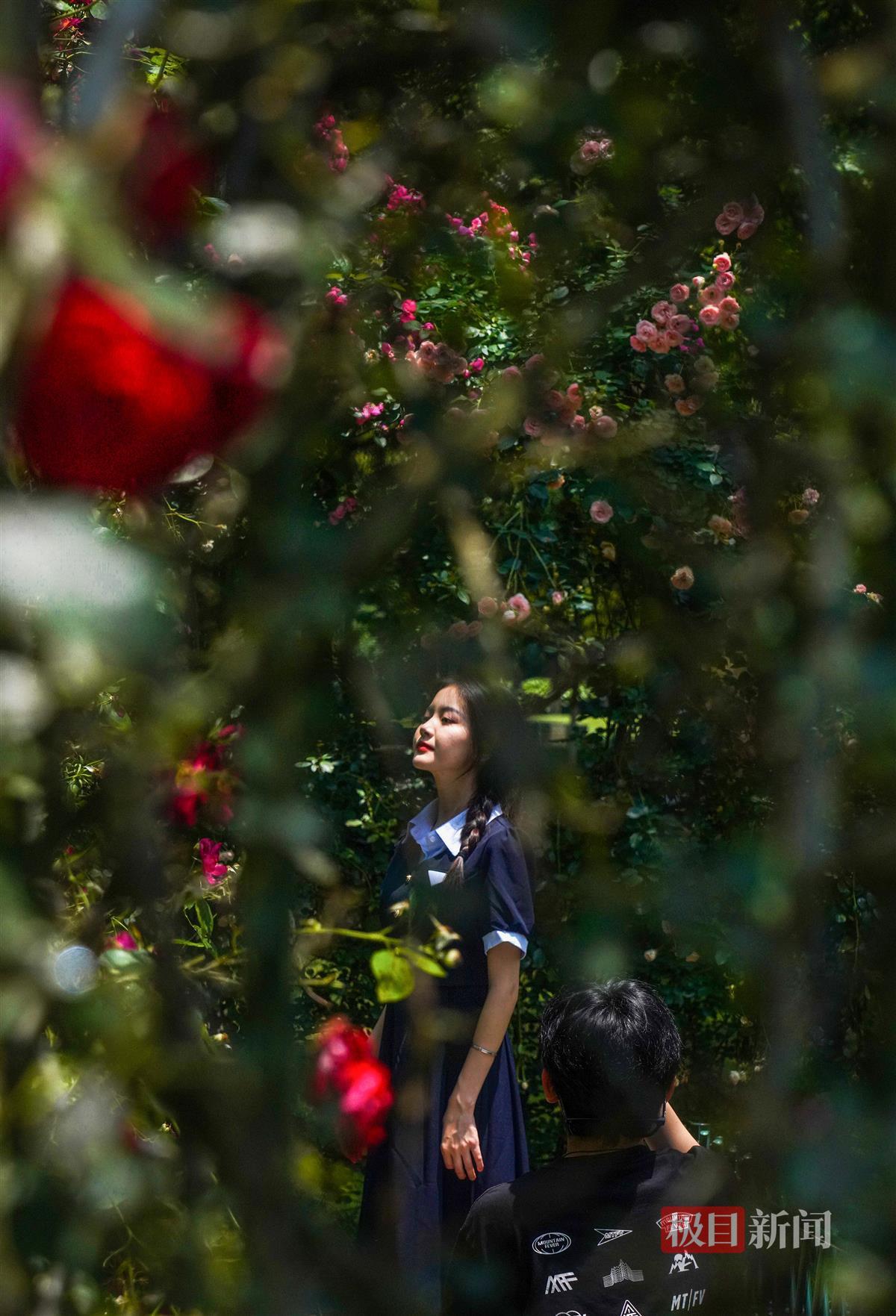 四月结束,春意渐远,夏风拂动,又是蔷薇、月季竞相绽放的时刻。5月6日,武汉市解放公园月季园内花团锦簇,暗香浮动,市民们沿着公园内的步道漫步,随意观赏各种颜色和品种的月季、蔷薇花,与亲朋好友共度美好时光。