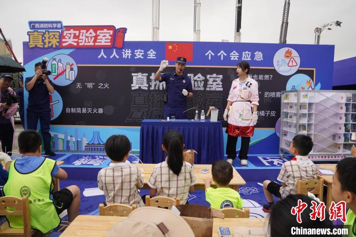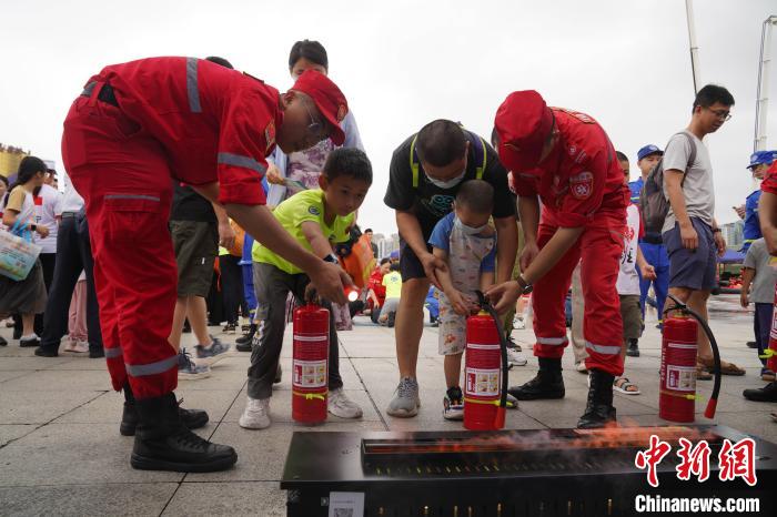 小学生参加现场进行的消防科普课堂。王以照 摄