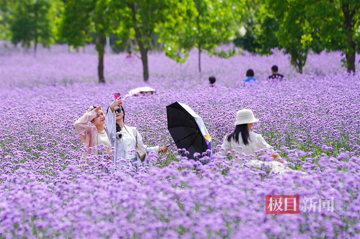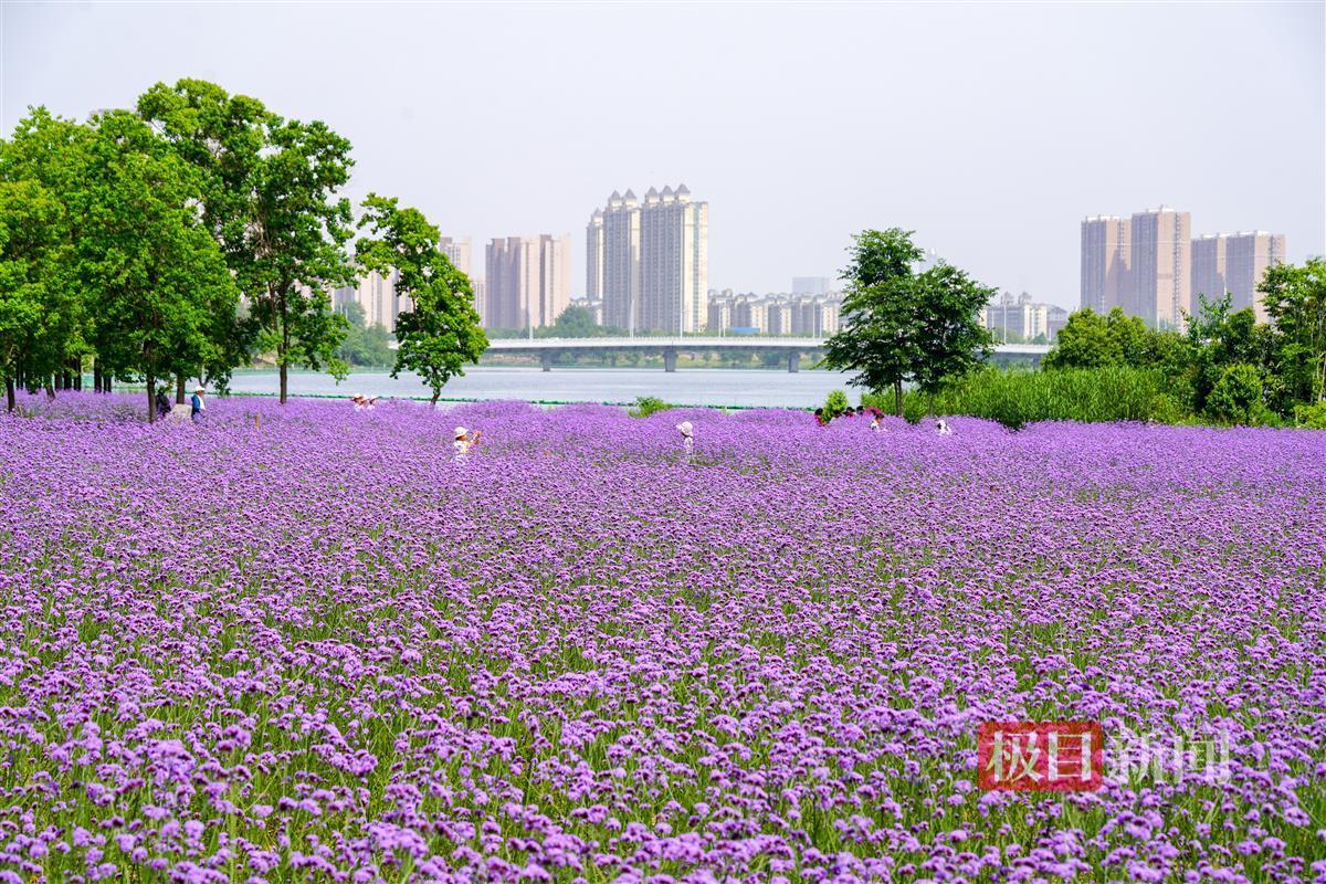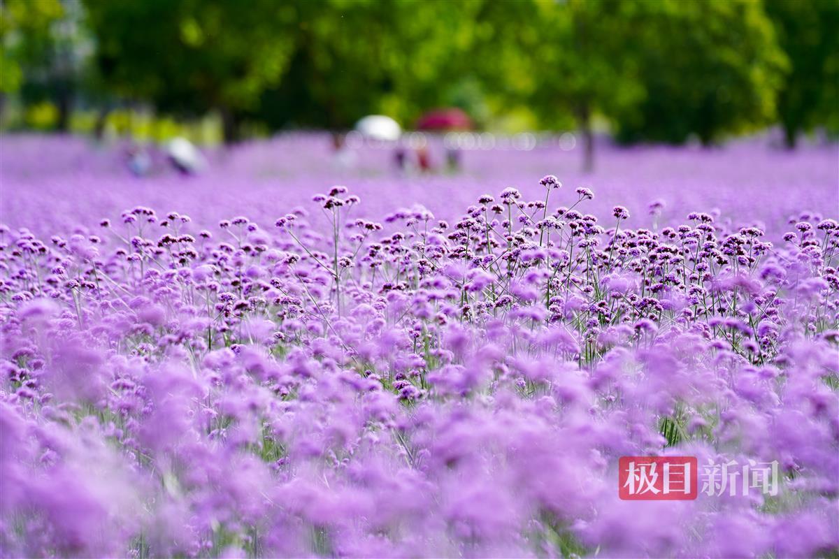 近日,武汉市东西湖区径河公园内占地8万平方米的柳叶马鞭草已进入盛花期,宛如紫色海洋的花海,景色蔚为壮观。