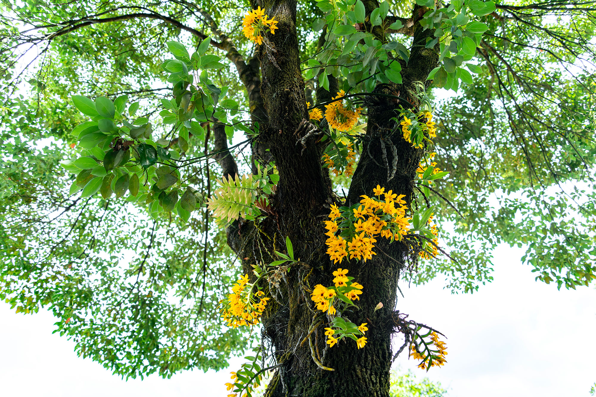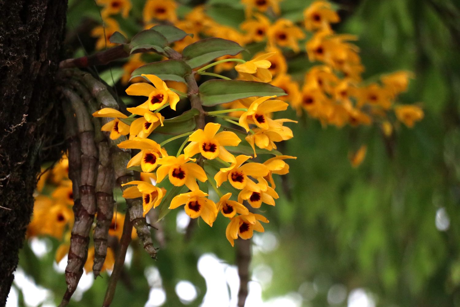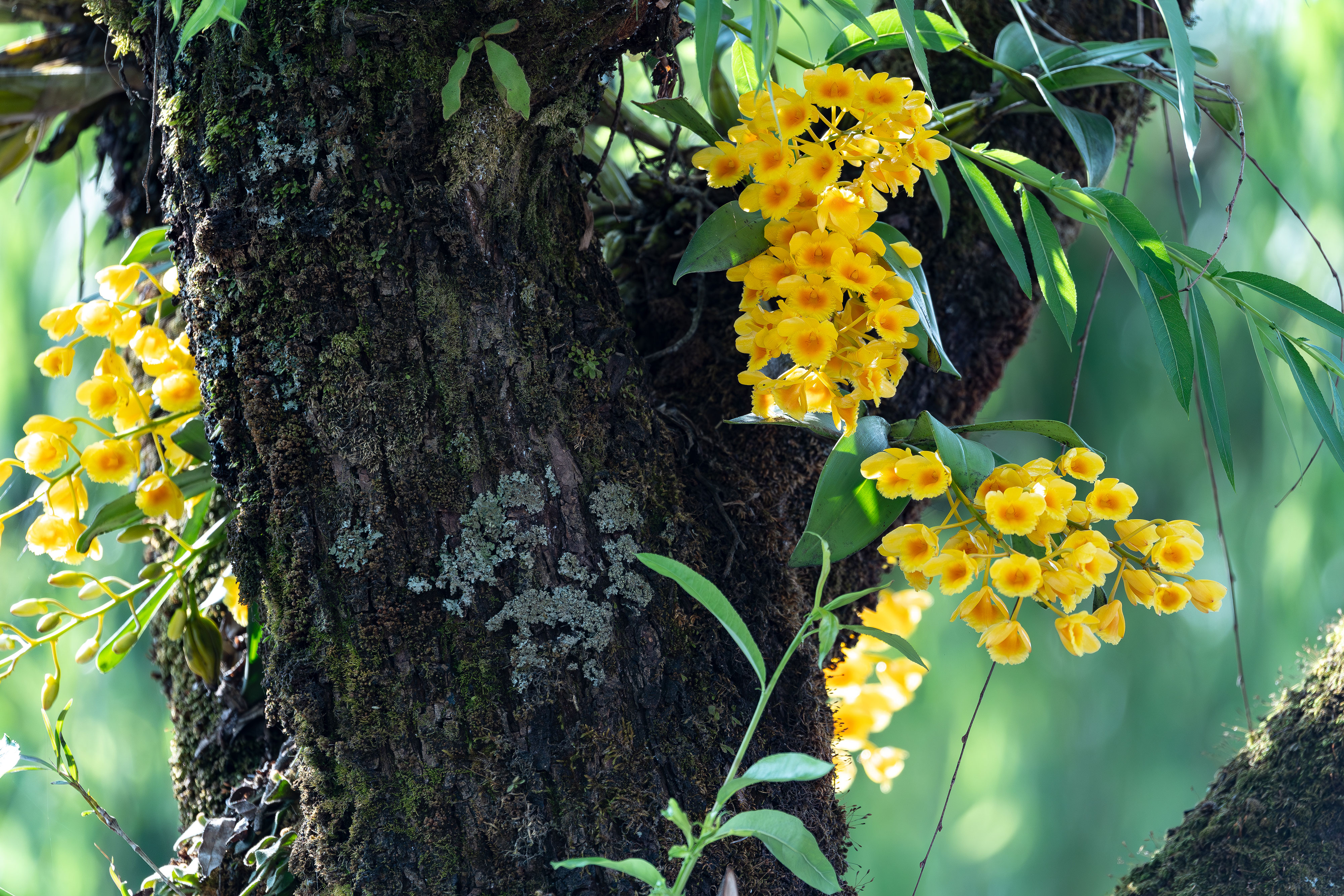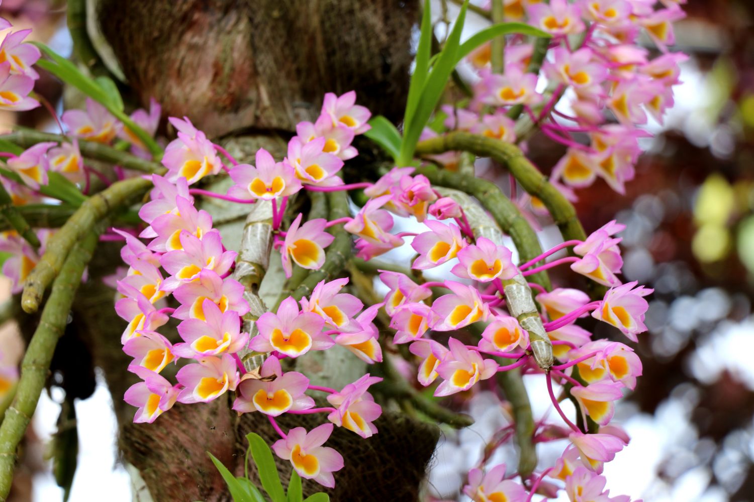 看着一串串清艳的石斛花在一棵棵枝繁叶茂的云南樟下“开”成浪漫的诗行,来自湖南的游客杨凤双,从未见到这么多的兰科植物集中汇聚。“花姿优美、艳丽多彩、气味芳香,龙陵城的石斛花让人叹为观止。”
