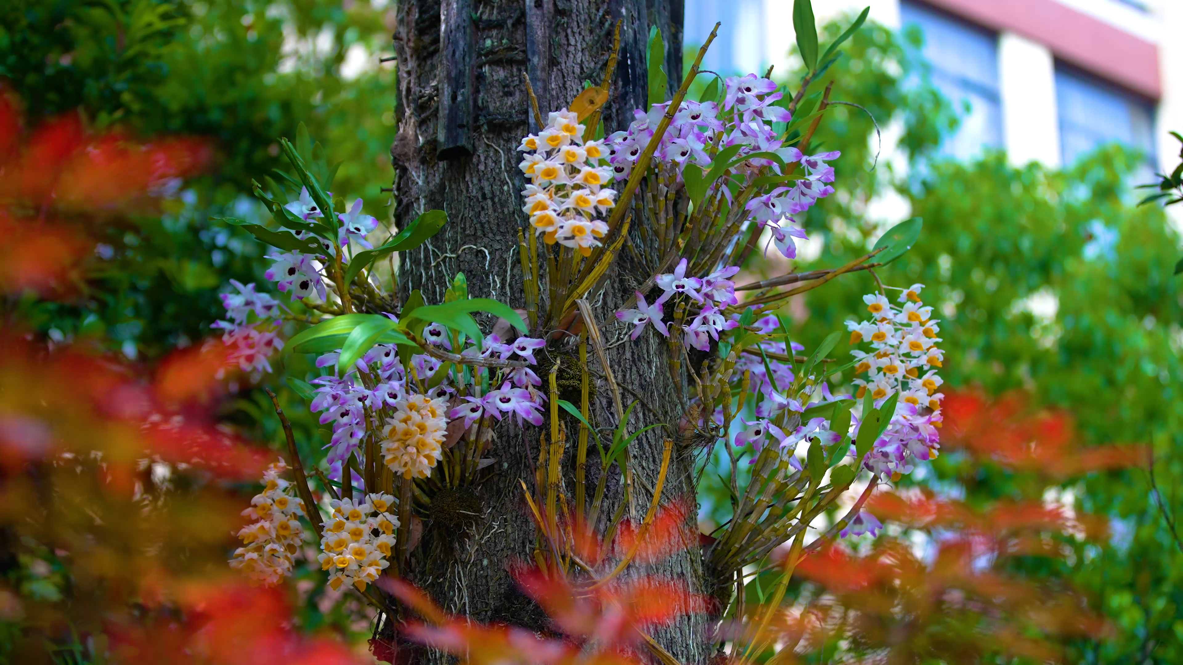 每年4月-6月正是石斛花盛开的季节。5月13日,记者走进龙陵,只见各种各样的石斛花竞相绽放在绿油油的云南香樟下,为绿美县城增彩添色。