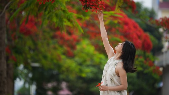 走在路上,不经意抬头一看,凤凰花开得如火如荼,花红得那样绚丽,那样耀眼,惊艳了过往的路人。