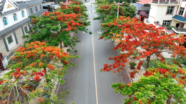 五月,是初夏的序曲,是万物生长的时节。在这个充满生机与活力的月份里,凤凰花如期绽放,盛开在陇川的每个街道。