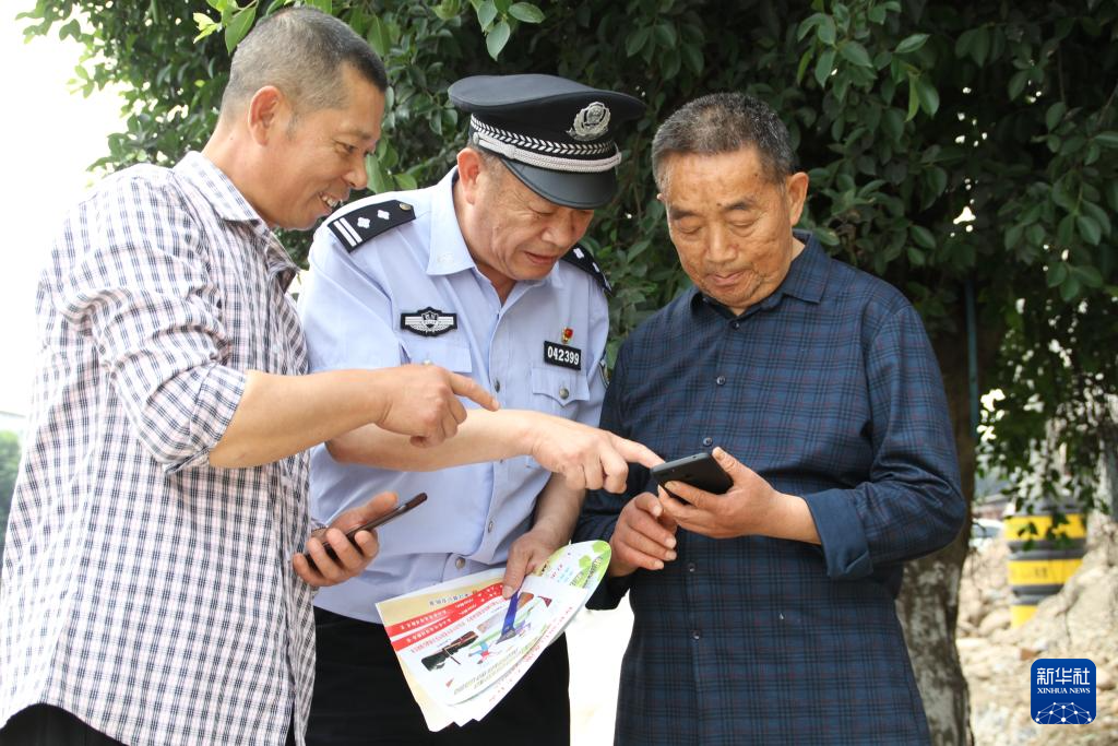 5月14日,在四川省乐山市夹江县甘江镇甘霖村,民警指导村民下载反诈应用程序。