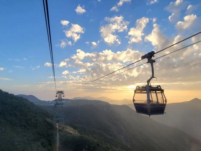 昂坪360缆车连接东涌市中心及昂坪,全长5.7公里,车程约25分钟,游客沿途可饱览北大屿山郊野公园、东涌湾的迷人景致,更可远眺香港国际机场的飞机起降,十分写意。