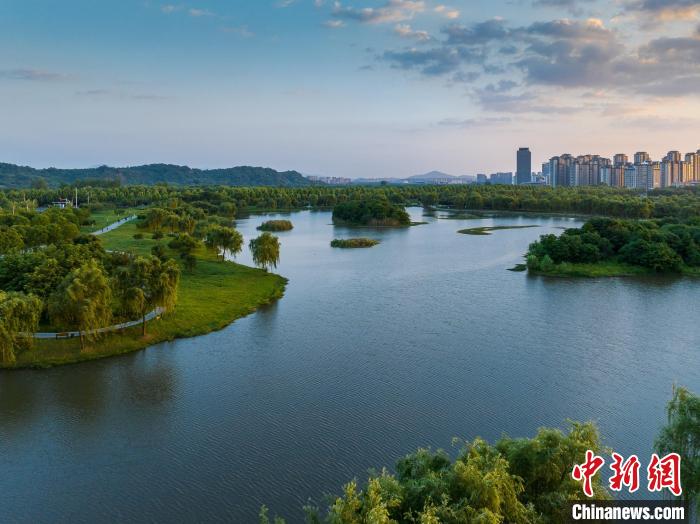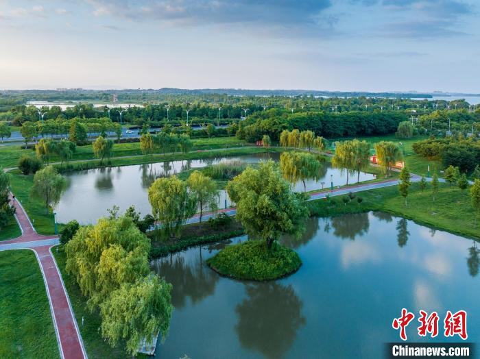 安徽省池州市贵池区平天湖湿地公园绿意盎然。饶颐摄