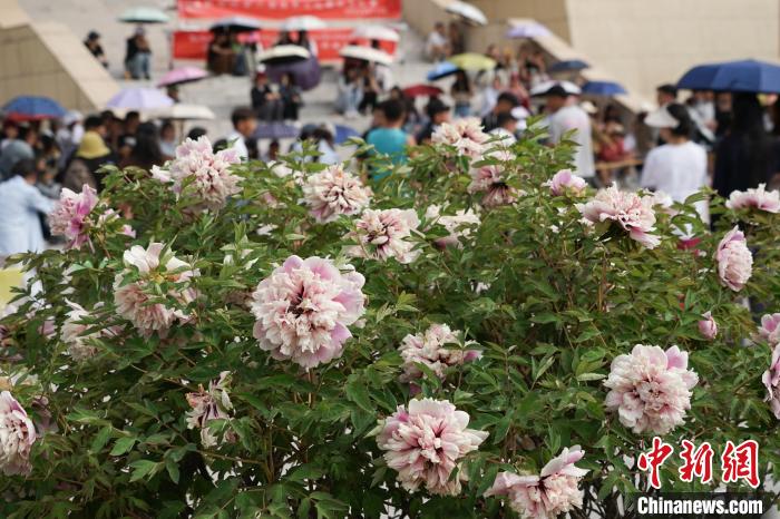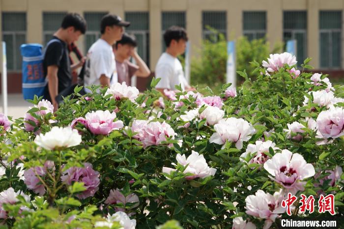 图为5月16日,青海民族大学校园内牡丹盛开,吸引民众。马铭言摄