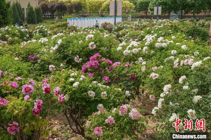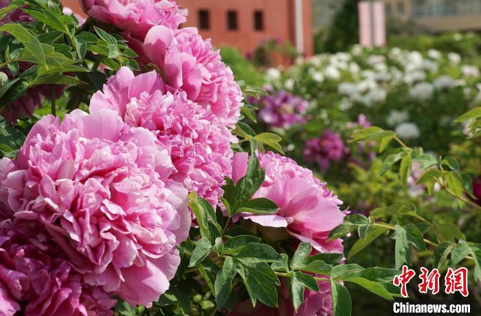 图为5月16日,青海民族大学校园内牡丹花开正艳。马铭言摄