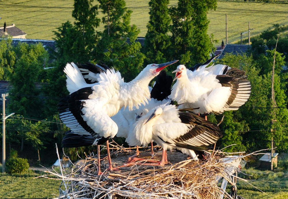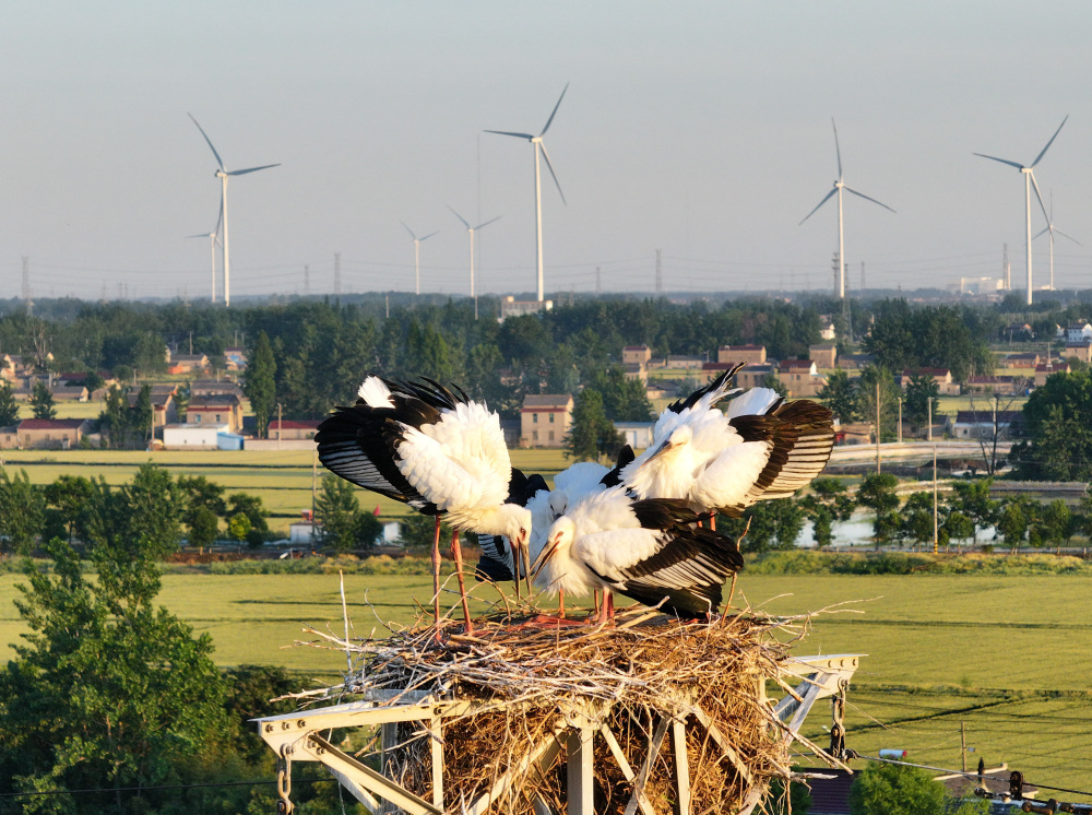 近年来,江苏省高邮市周山镇生态环境持续向好,引来“鸟中国宝”东方白鹳栖息、繁衍。