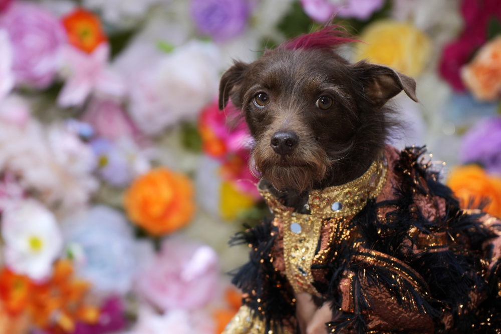 5月20日,一只宠物狗参加在美国纽约举行的宠物时装展。新华社/法新