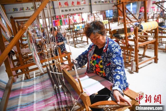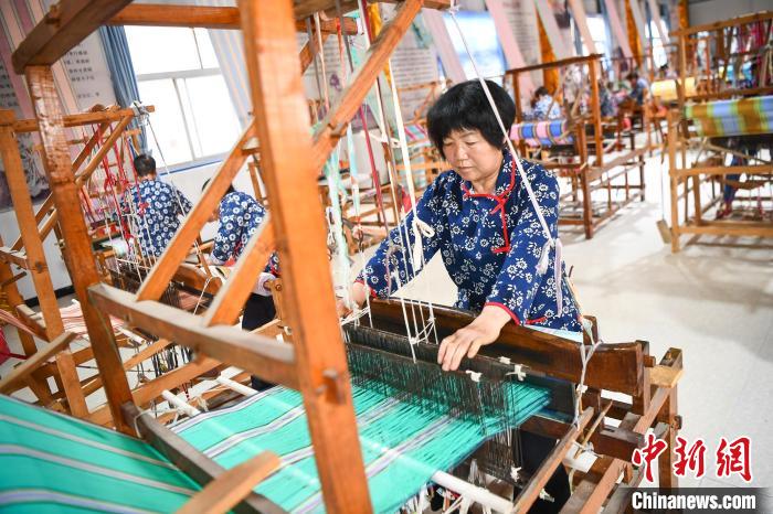纺织艺人手中的梭子在千百根彩线间来回穿梭。武俊杰 摄
