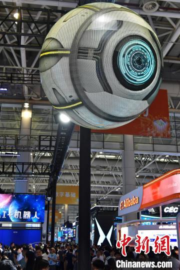 图为峰会现场体验区展示的可以统计参观人数的“大眼球”——AI视界。 中新网记者张斌摄
