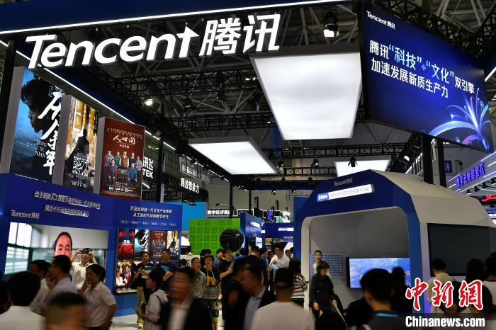 图为参观者在峰会现场体验区腾讯展馆参观。 中新网记者张斌摄