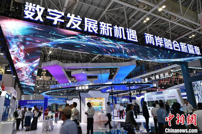 5月24日,第七届数字中国建设峰会在福建省福州市启幕。相较往届,本届峰会台港澳元素更加浓厚,独立设置了香港馆、两岸融合专区。图为峰会上设置的两岸融合专区。 中新网记者张斌摄