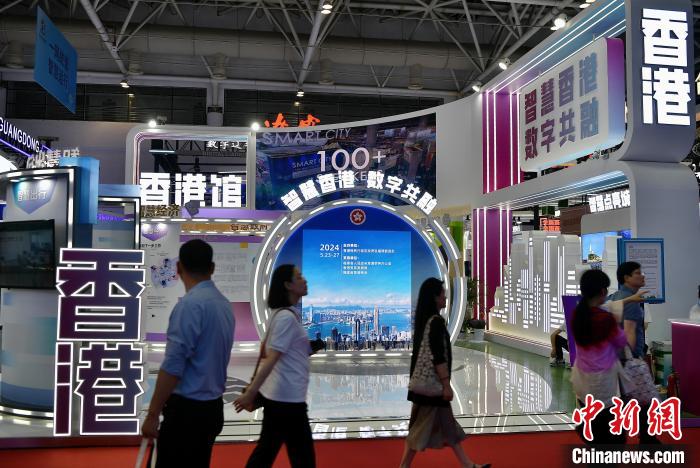 5月24日,第七届数字中国建设峰会在福建省福州市启幕。相较往届,本届峰会台港澳元素更加浓厚,独立设置了香港馆、两岸融合专区。图为峰会上设置的香港馆。 中新网记者张斌摄