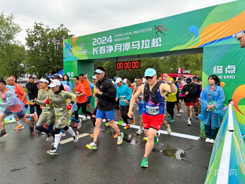 细雨中开始净月潭马拉松(央广网记者张学龙摄)