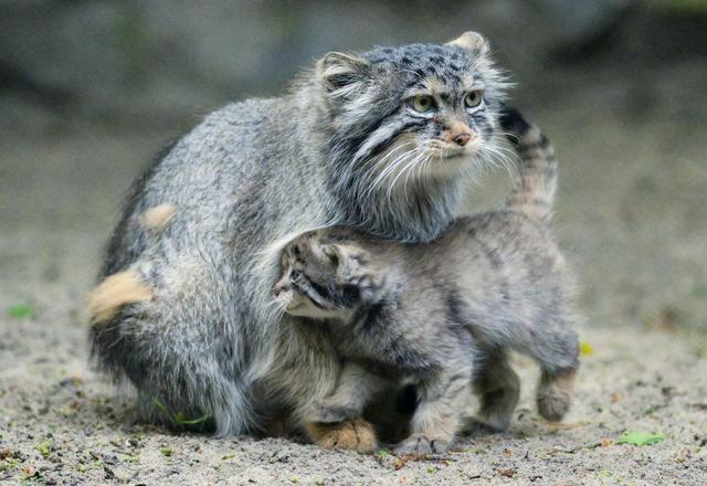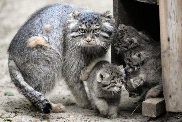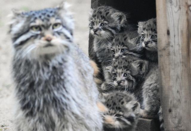该动物园的两只雌性兔狲今年4月生下了共12只兔狲宝宝。