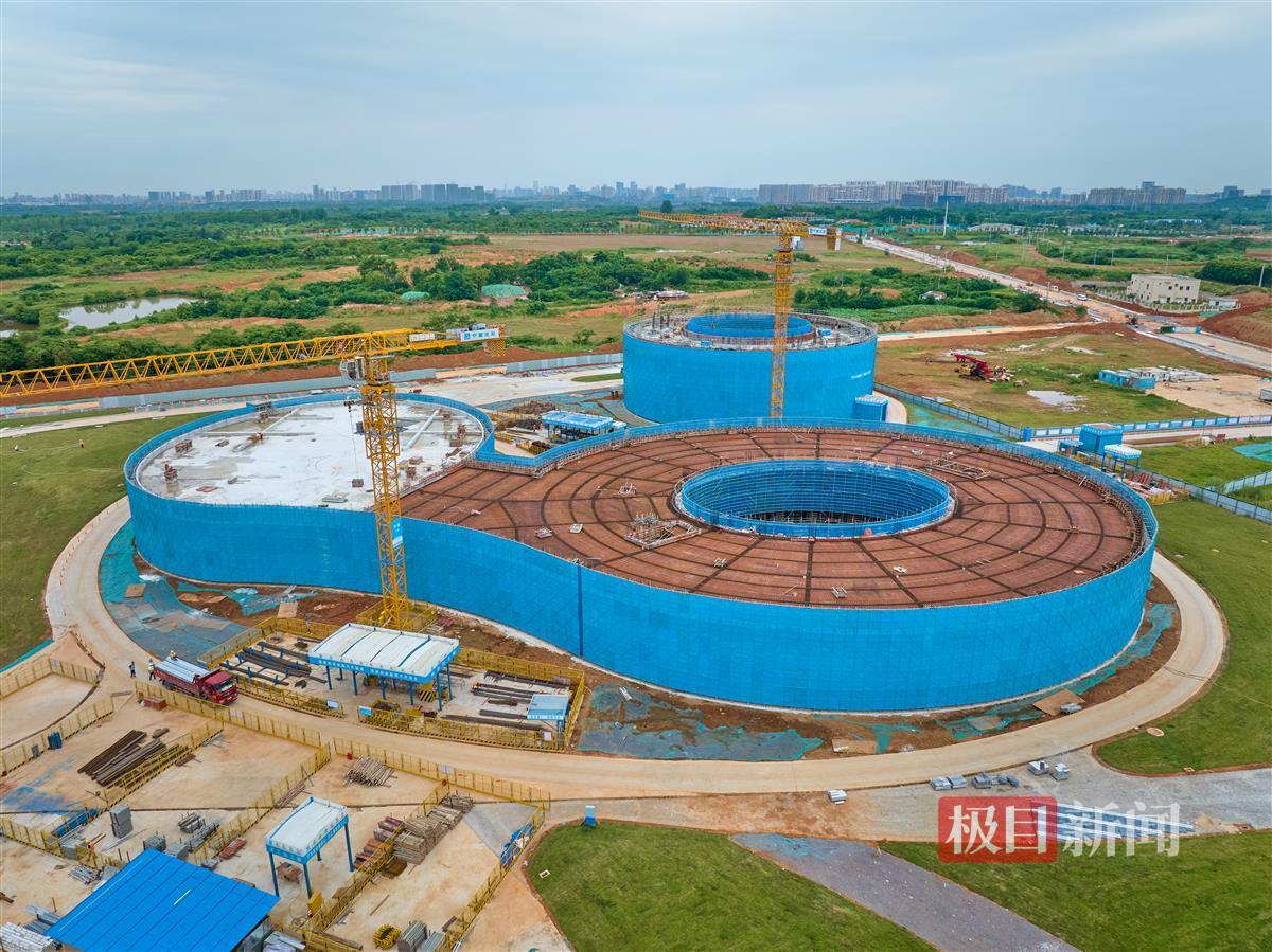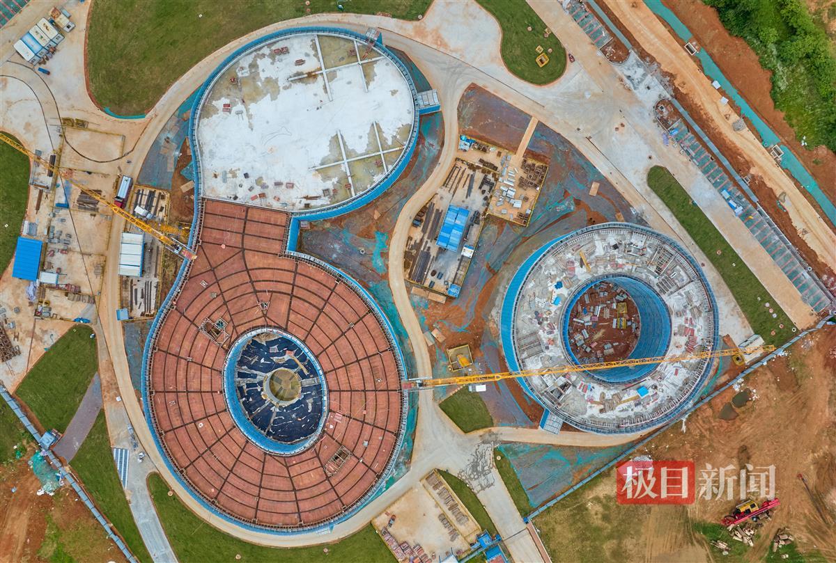 6月4日,俯瞰深部岩土工程扰动模拟设施项目的建设现场,项目正冲刺封顶节点,力争年内竣工交付。