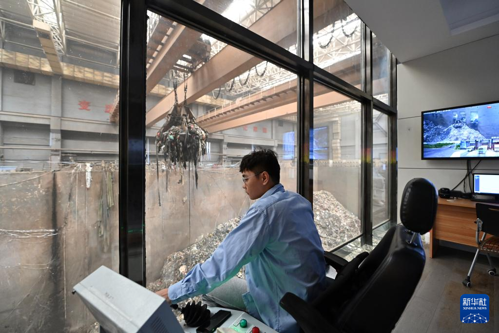 6月4日,工作人员在锅炉焚烧间内巡查。