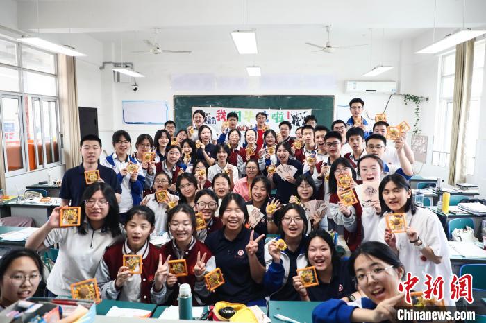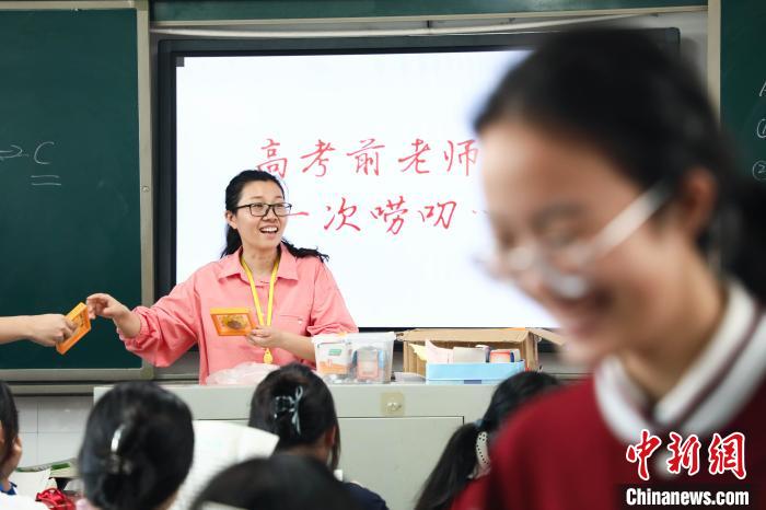 6月5日,在江西省南昌市第一中学高三年级的教室里,充满欢笑与祝福的高中“最后一课”生动上演,课堂上,有老师对学生的鼓励,也有学生对老师的感激,高三学子们在轻松愉快的氛围中结束了高中的“最后一课”,准备迎接高考。图为学生收到班主任准备的毕业礼物。刘思伟摄
