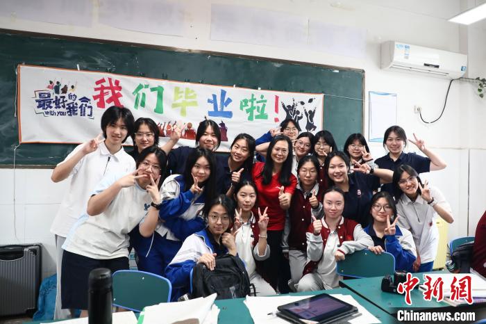 6月5日,在江西省南昌市第一中学高三年级的教室里,充满欢笑与祝福的高中“最后一课”生动上演,课堂上,有老师对学生的鼓励,也有学生对老师的感激,高三学子们在轻松愉快的氛围中结束了高中的“最后一课”,准备迎接高考。图为老师在“最后一课”上和学生合影留念。刘思伟摄