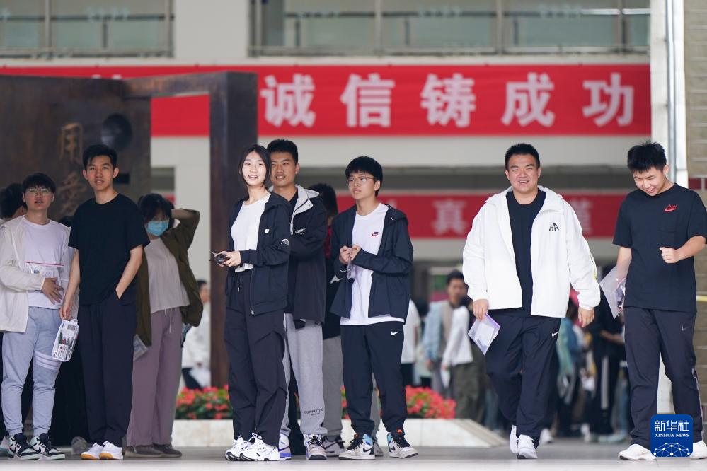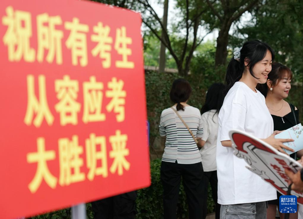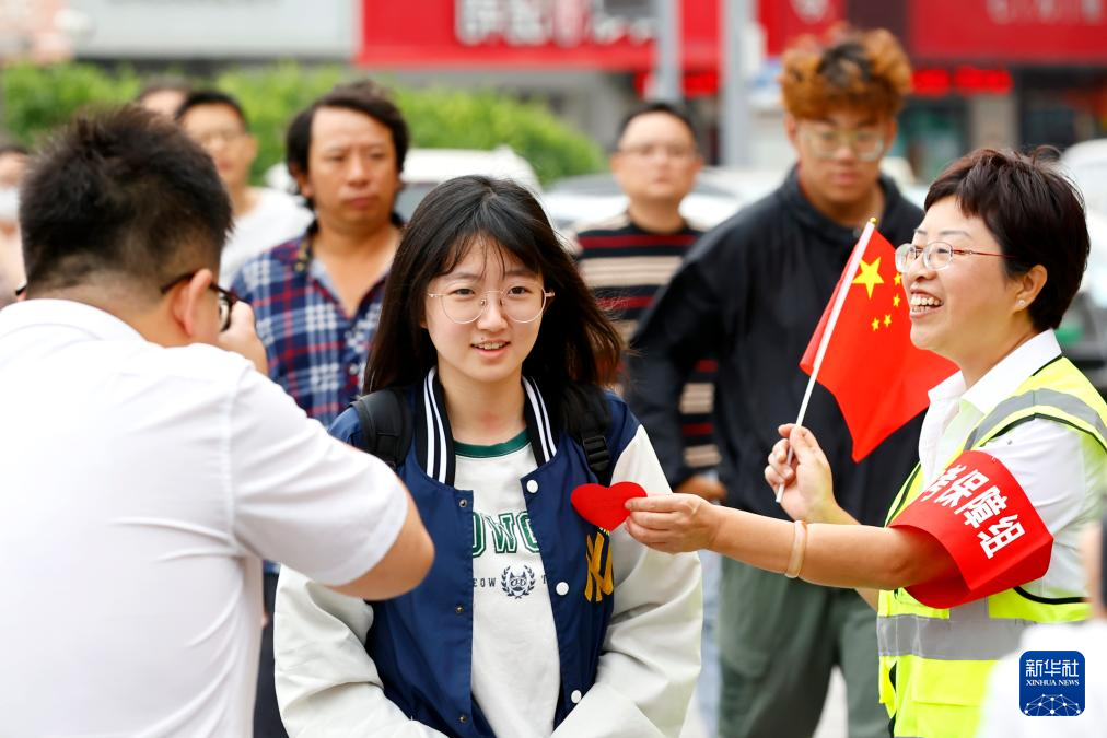6月7日,考生们在江苏省南京市建邺区中华中学考点进场备考。