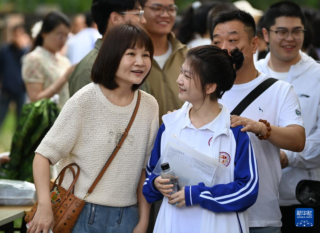 6月7日,在陕西西安高新第一中学南校区考点,家长送考生进入考场。
