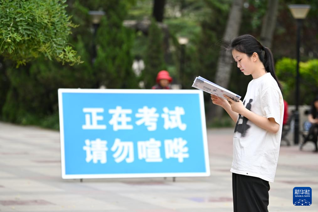 6月7日,在中国农业大学附属中学考点,考生在休息区等待考试。