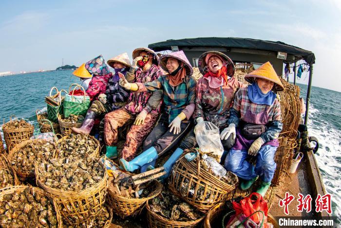 图为张秀清作品《采蚝归来》。 2023年3月,钦州大蚝养殖基地的采蚝女满载而归。广西文联供图