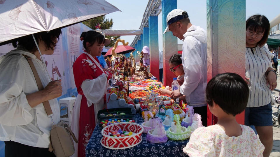 在非遗文化展示区内,设置了剪纸、糖画、豆面灯等40余项非遗制作展台,让更多的人认识非遗、走进非遗、爱上非遗,游客们流连其中,选购自己心仪的“非遗好物”,了解荣成民间传统“好手艺”。