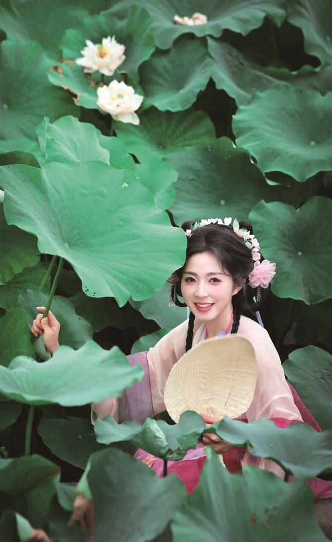 刚进景区,市民游客被眼前的一片绿意和点点红粉所吸引。满池的荷花在层层叠叠的荷叶丛中或含苞待放,或肆意盛开。荷花的花瓣洁白如玉,又透出淡淡的粉红,与碧绿的荷叶相映成趣。