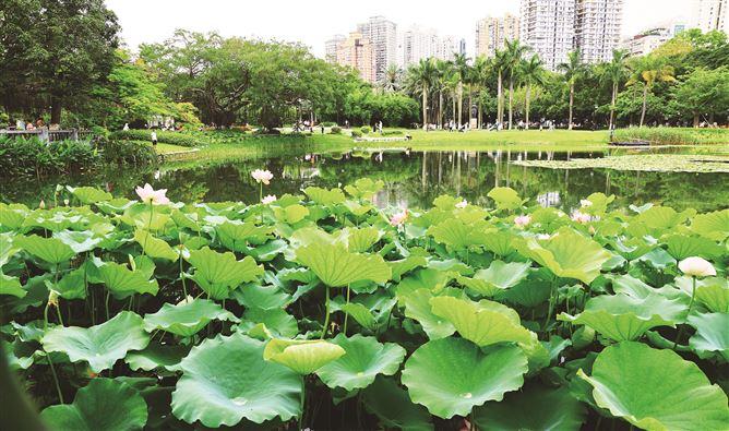 ■满塘荷花吸引市民打卡。林鄞摄