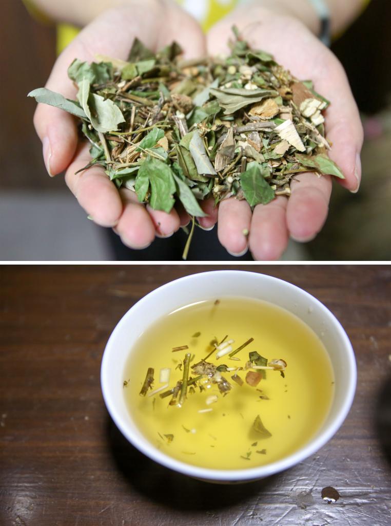 2017年5月25日在浙江松阳拍摄的端午茶。端午茶又称“百草茶”,是浙江松阳独具特色、历史悠久的日常饮品,因端午节前后采选百草晾制而得名,如今是松阳一带百姓家中常备饮品。据悉,端午茶无固定配方,全凭百姓结合自家口味、体征和经验制作。